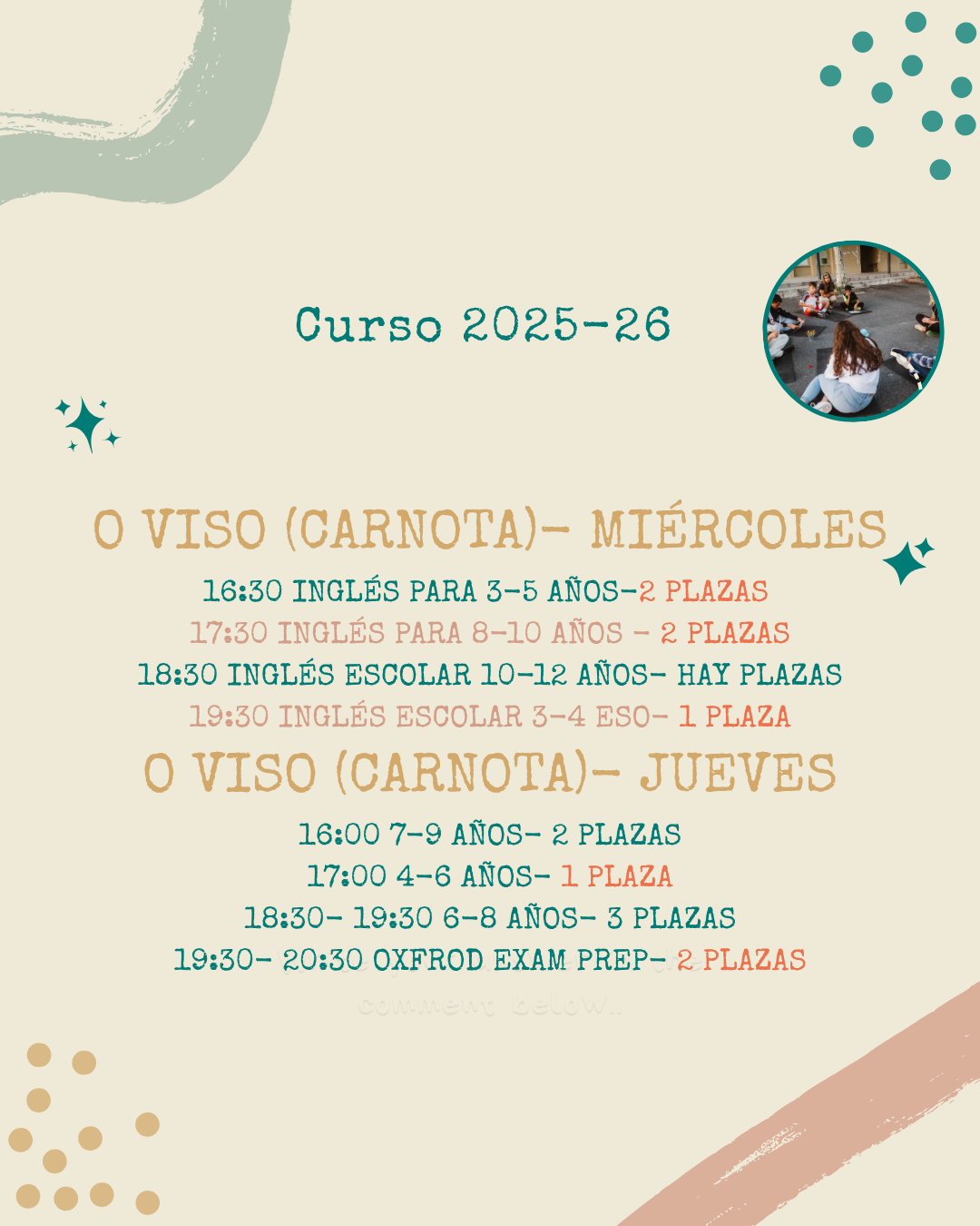 Llámanos o whatsapp 677157233 para consultar disponibilidad de los grupos.